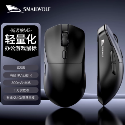 斯迈狼M3Pro无线电竞鼠标蓝牙三模PAW3311轻量化游戏FPS有线1KHZ