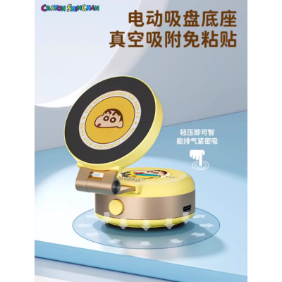 ROCK电动吸盘磁吸手机支架2025新款懒人真空吸附壁挂手机架折叠蜡笔小新卡通可爱万能通用桌面直播车载支撑架