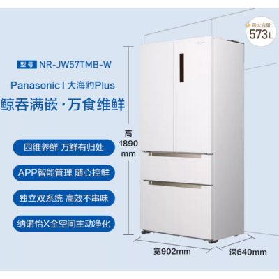 松下大海豹Plus573L法式多门零嵌冰箱除菌养鲜独立双循环JW57TMB