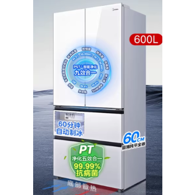 美的 BCD-600WUFGPZMA十字对开双开四门家用超薄冰箱