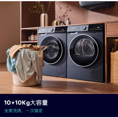 【蓝宝石】西门子无界10+10kg家用滚筒洗衣机烘干机洗烘套装2D00