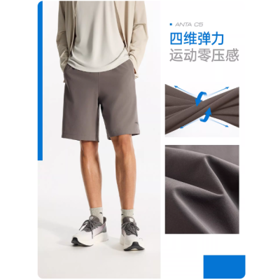 安踏速干裤丨运动短裤男士夏季冰丝透气五分裤健身训练黑色跑步裤