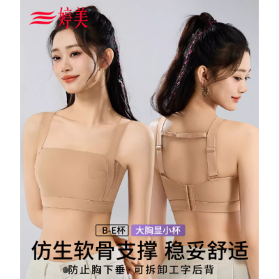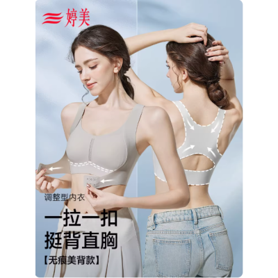 婷美强聚拢托胸无痕透气塑形提拉防下垂前扣环抱式工字美背