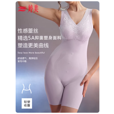 婷美秋冬新款高定蕾丝塑身美体衣收腹提臀提拉胸部后脱式显瘦内衣