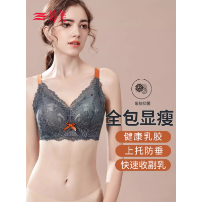婷美乳胶大胸薄款内衣蕾丝全包容防下垂收副乳胸罩舒适无钢圈文胸