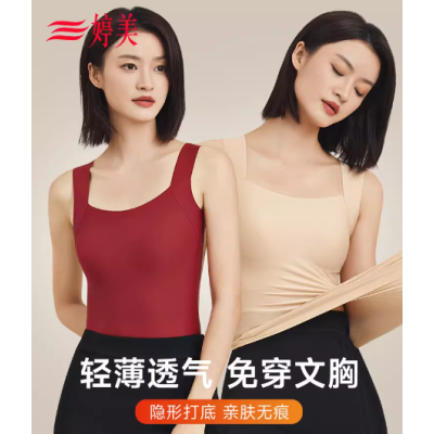 婷美免穿文胸无痕肌底衣可外穿带胸垫一体式打底背心塑形显瘦内衣