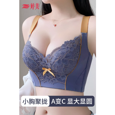婷美院线款小胸聚拢显大内衣提拉防垂调整型收副乳软支撑蕾丝文胸