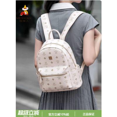 稻草人双肩包包女新款小众时尚背包撞色复古校园书包百搭旅行包