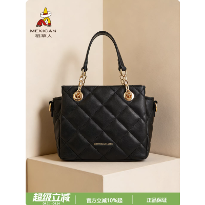 稻草人包包女式新款轻奢高级菱格手提包优雅精致链条包百搭斜挎包