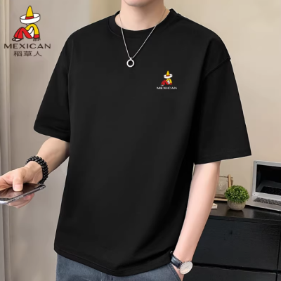 稻草人纯棉黑色短袖男士t恤宽松休闲运动百搭大码半袖