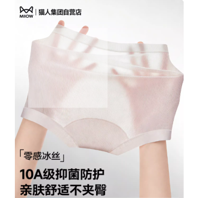 猫人内裤女士冰丝三角裤女生无痕款中高腰隐形夏季平角透气短裤