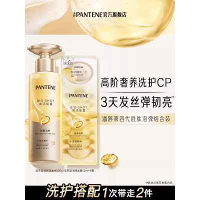 【店播专属】潘婷礼盒玫瑰泡弹发膜洗发水护发精油女改善毛躁柔顺