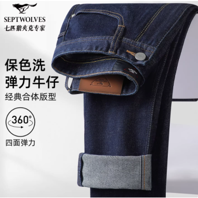 【保色洗】七匹狼弹力水洗牛仔裤男春季新款休闲通勤原牛风长裤子