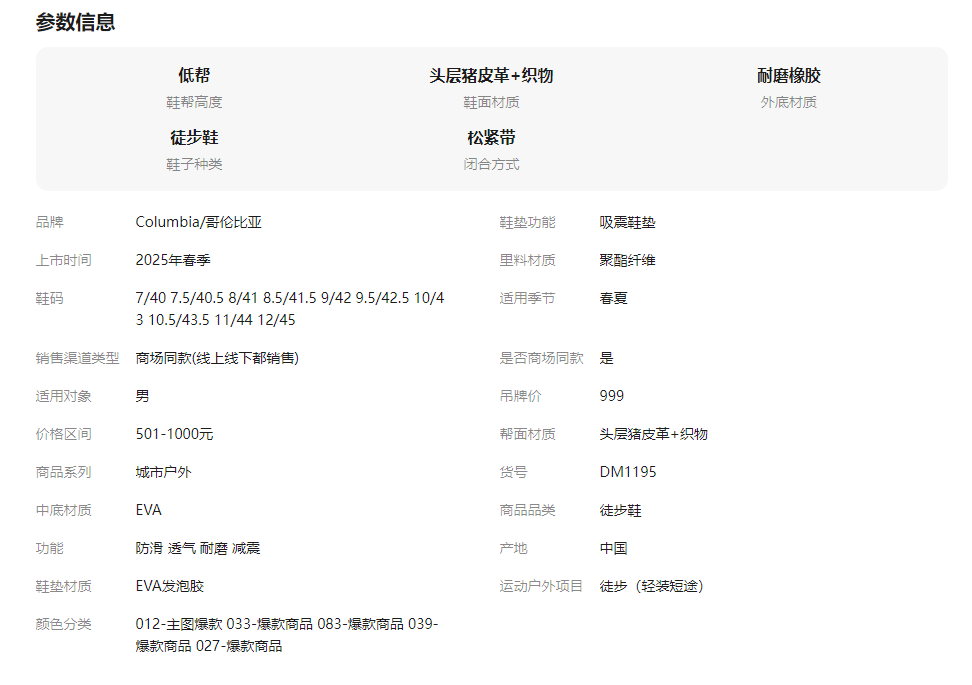 哥伦比亚2026春夏新品户外男鞋透气轻便运动休闲登山徒步鞋