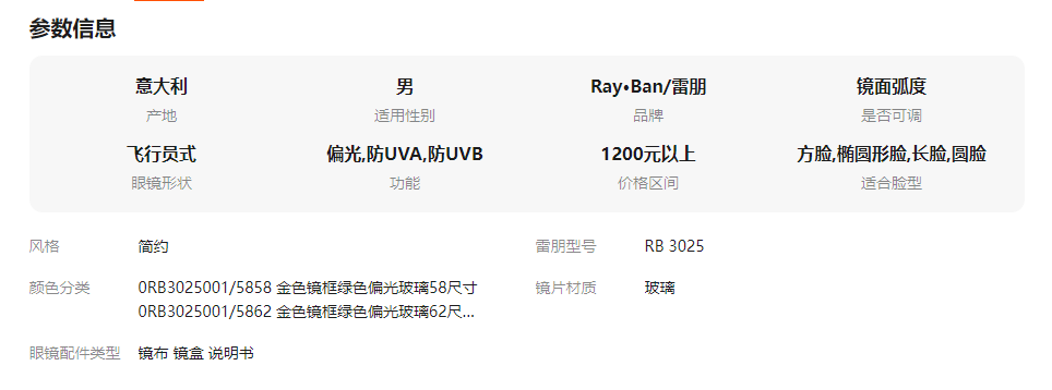 RayBan雷朋偏光太阳镜飞行员墨镜眼镜RB3025男款镜框玻璃