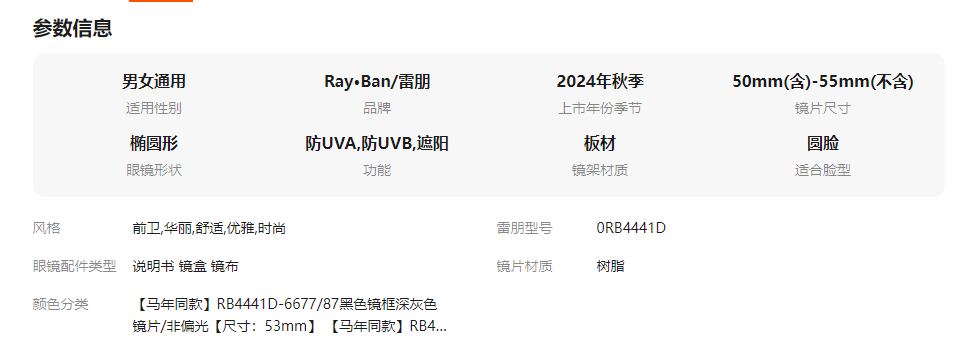 雷朋枕形窄框太阳镜男女防晒潮流墨镜0RB4441D