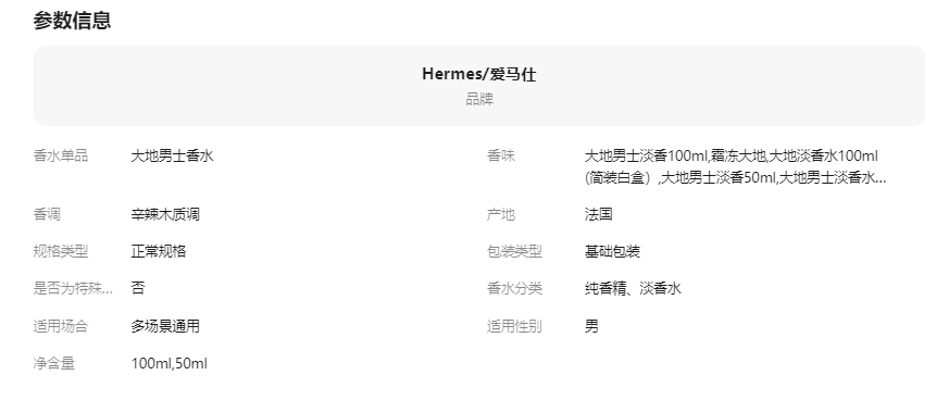 Hermes爱马仕大地香水男木质调礼物淡香