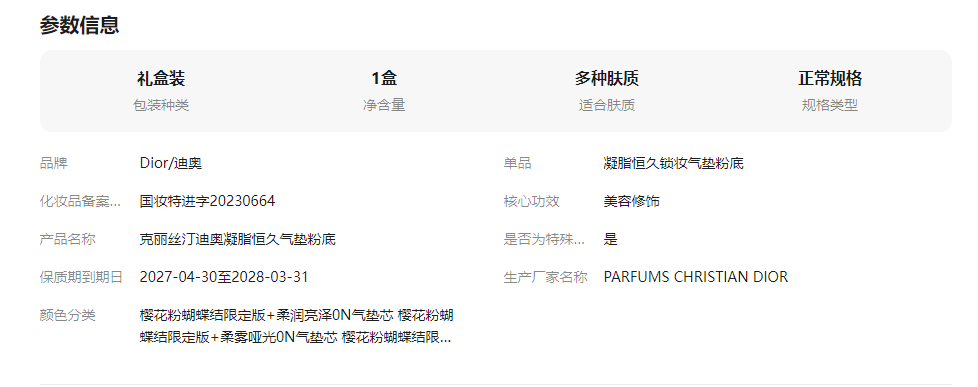 Dior迪奥凝脂恒久气垫粉底 樱花粉蝴蝶结限定版