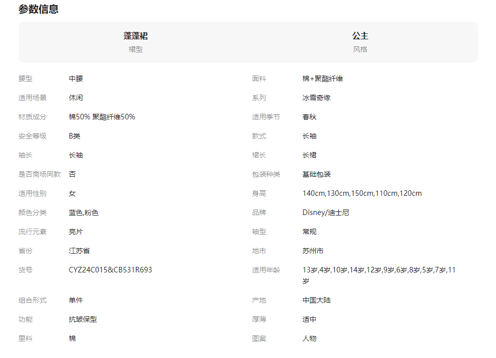 迪士尼童装艾莎公主裙2026春秋新款女童连衣裙女孩洋气春装网纱裙