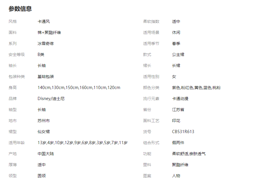 迪士尼女童艾莎连衣裙2026春季新款长袖网纱公主裙生日礼服裙长裙