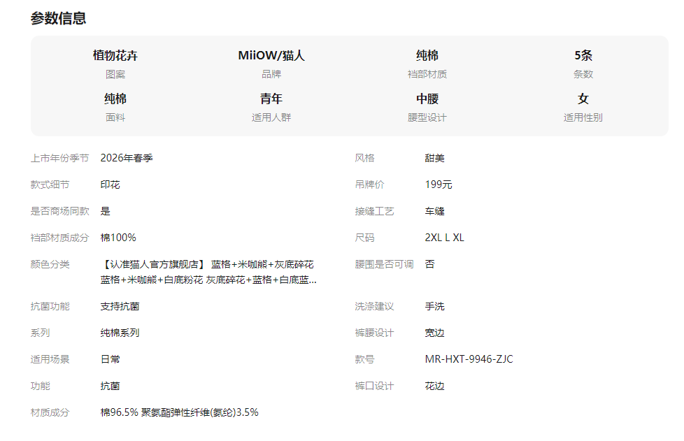 猫人内裤女士纯棉2026新款10a级抗菌加长裆女生高颜值绝美三角裤