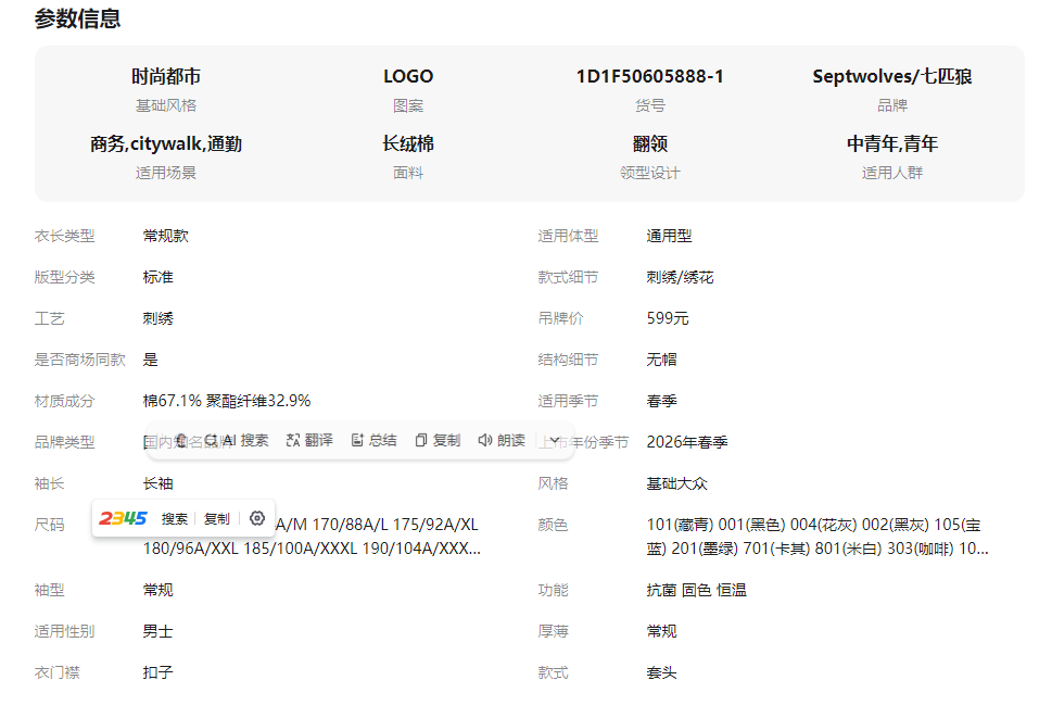 【抗菌长绒棉】七匹狼固色耐洗长袖T恤男春季新款纯色翻领polo衫
