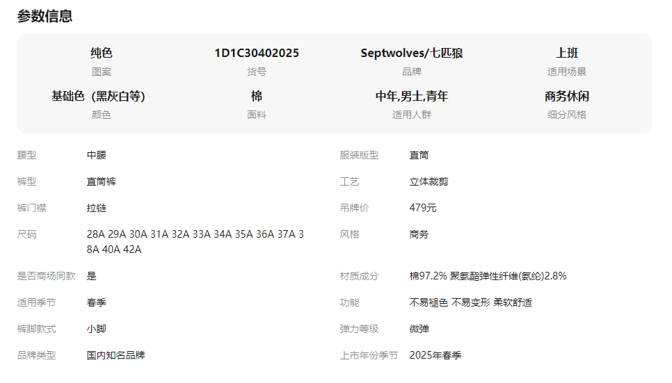 【弹力棉】七匹狼直筒休闲裤男春季新款纯色西裤宽松商务长裤子