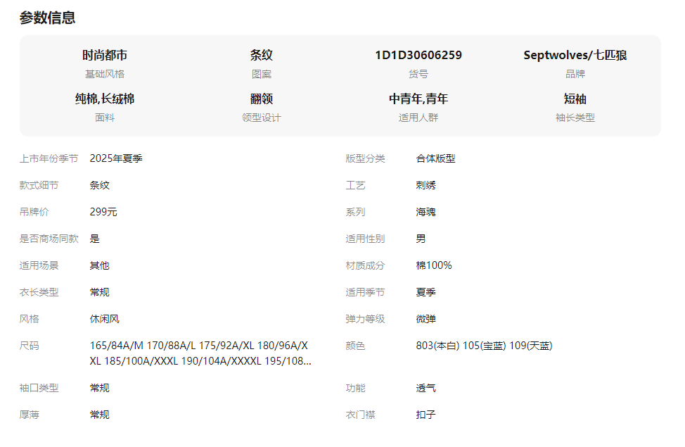 【纯棉】七匹狼条纹海魂衫短袖T恤男夏季新款长绒棉翻领polo衫