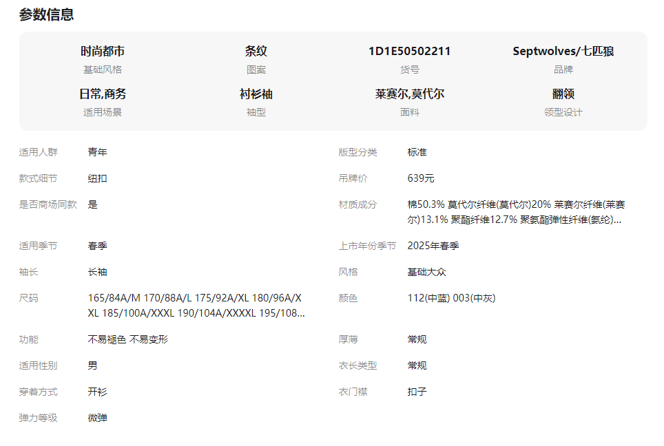 【液氨整理】七匹狼天丝抗皱长袖衬衫男春季新款休闲商务条纹衬衣