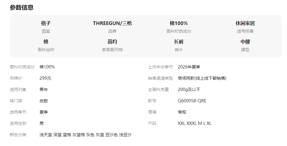 三枪2026春夏新品全棉男士睡裤水柔棉休闲格纹长裤纯棉家居裤