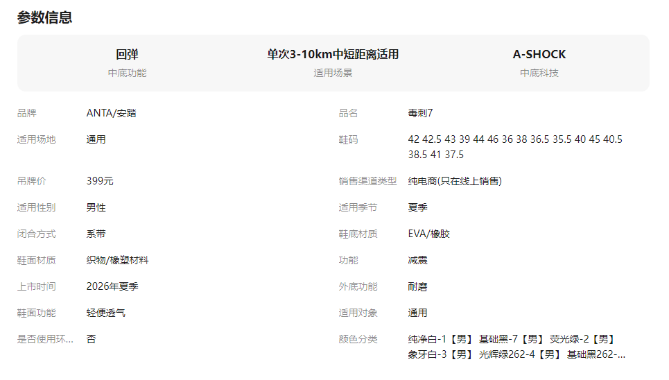 安踏毒刺7代丨缓震软底透气跑步鞋男通勤运动鞋耐磨中考体测跑鞋