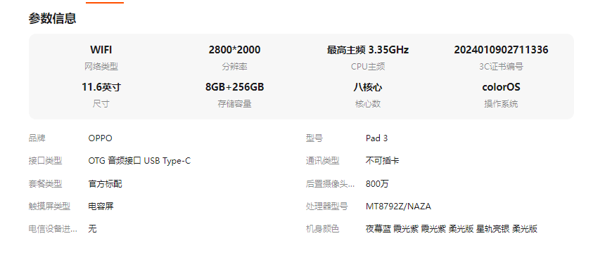 OPPO Pad 3平板电脑学习机学生办公阅读144Hz超高刷 IOS互传 平板ipad oppo官方旗舰店正品