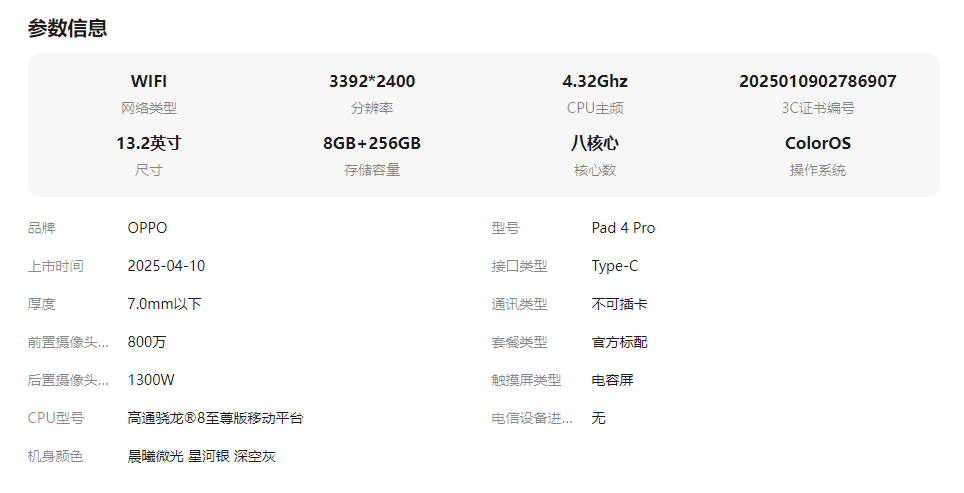 OPPO Pad 4 Pro 孙颖莎同款大屏3.4K 超清原彩屏高通骁龙 8 至尊版芯片新款oppo平板电脑