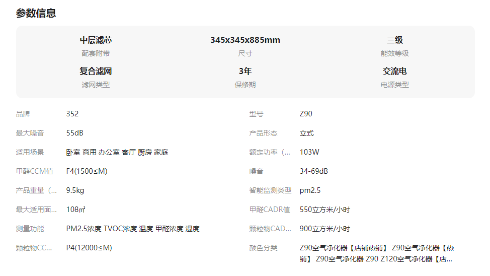 352空气净化器Z90家用除甲醛TVOC花粉吸烟宠物异味雾霾空气净化机