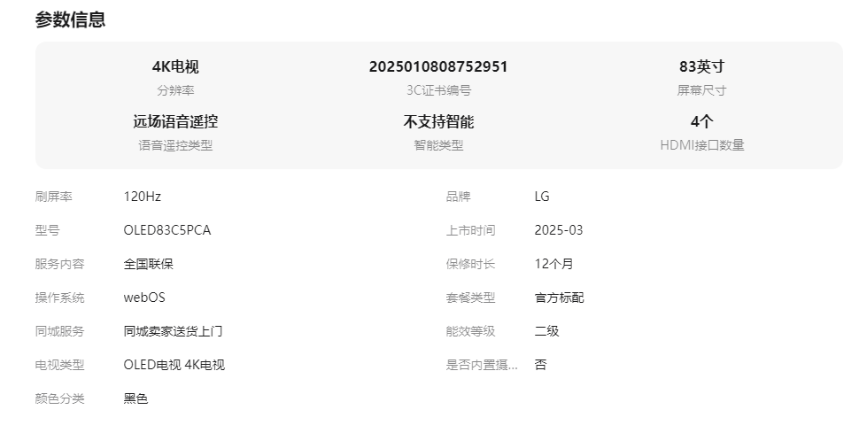 LG OLED83C5 83英寸144Hz高刷巨幕大屏游戏电视Y