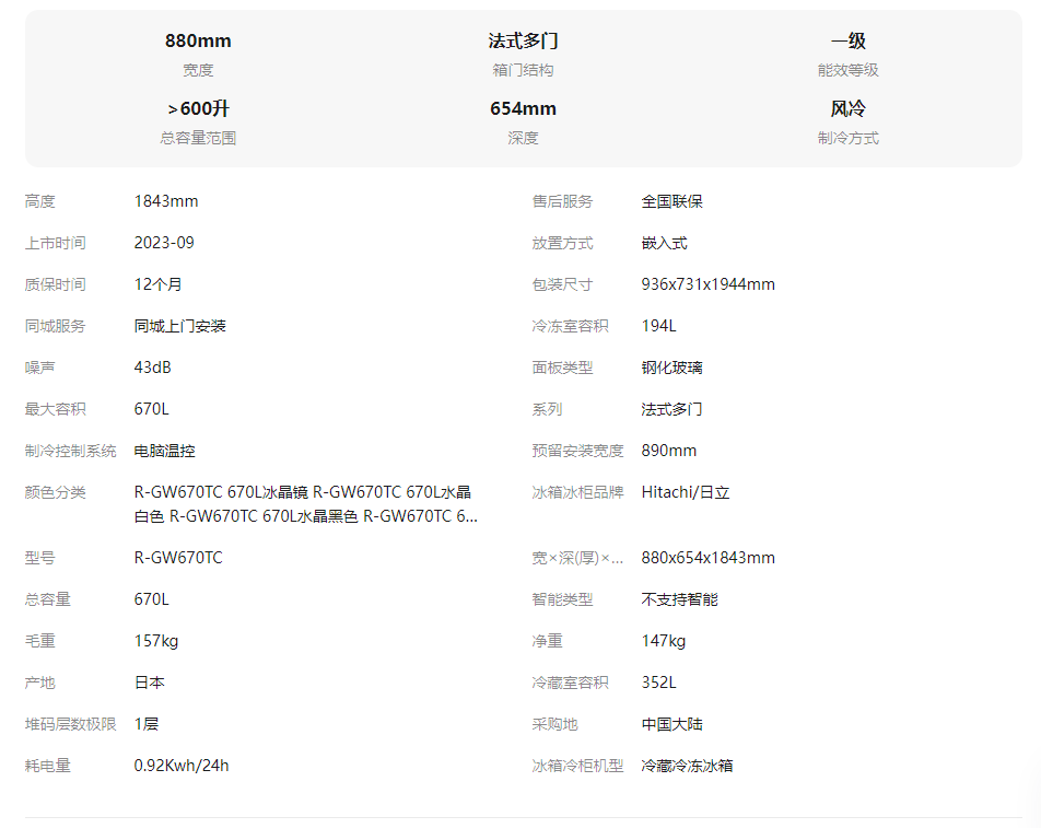 日立冰箱670tc超薄旗舰机日本原装进口嵌入式家用大容量电冰箱