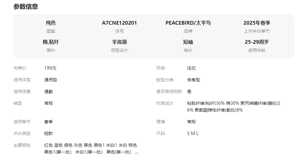 太平鸟爆款升级半高领短袖T恤26夏款收腰显瘦气质短款法式上衣女