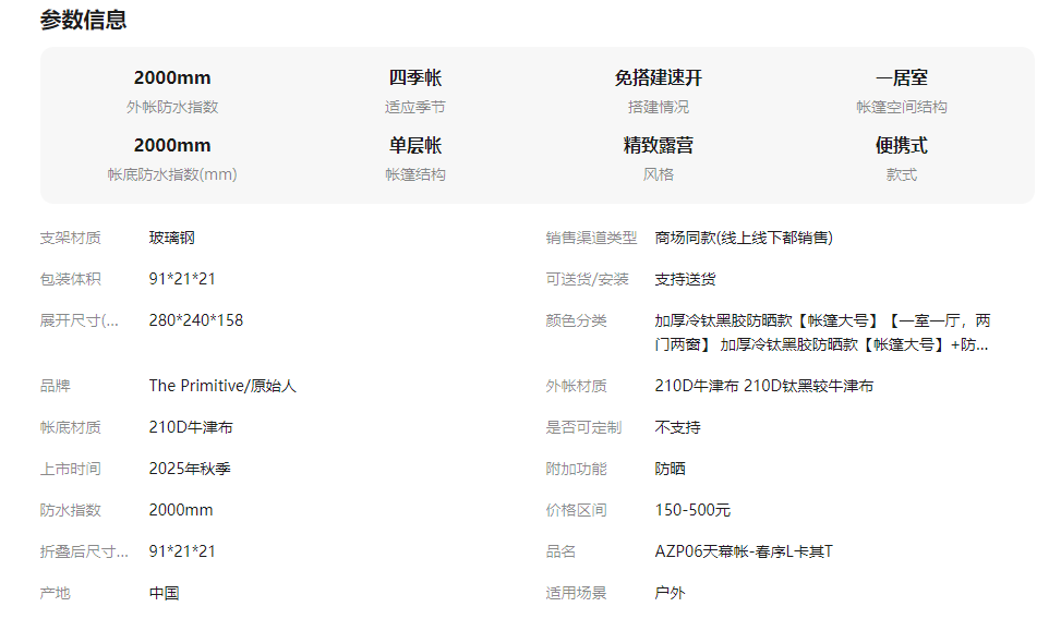 原始人帐篷户外便携式折叠自动野外露营装备全套野营过夜加厚防雨